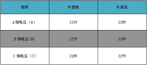 電壓補(bǔ)償前、補(bǔ)償后數(shù)據(jù)對比:
